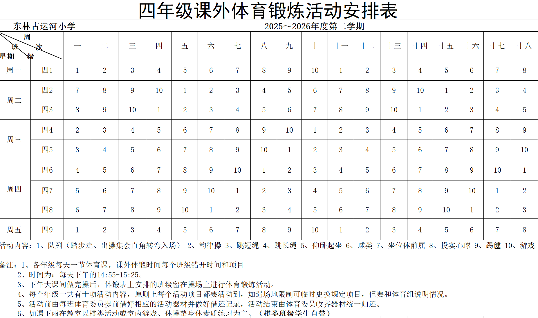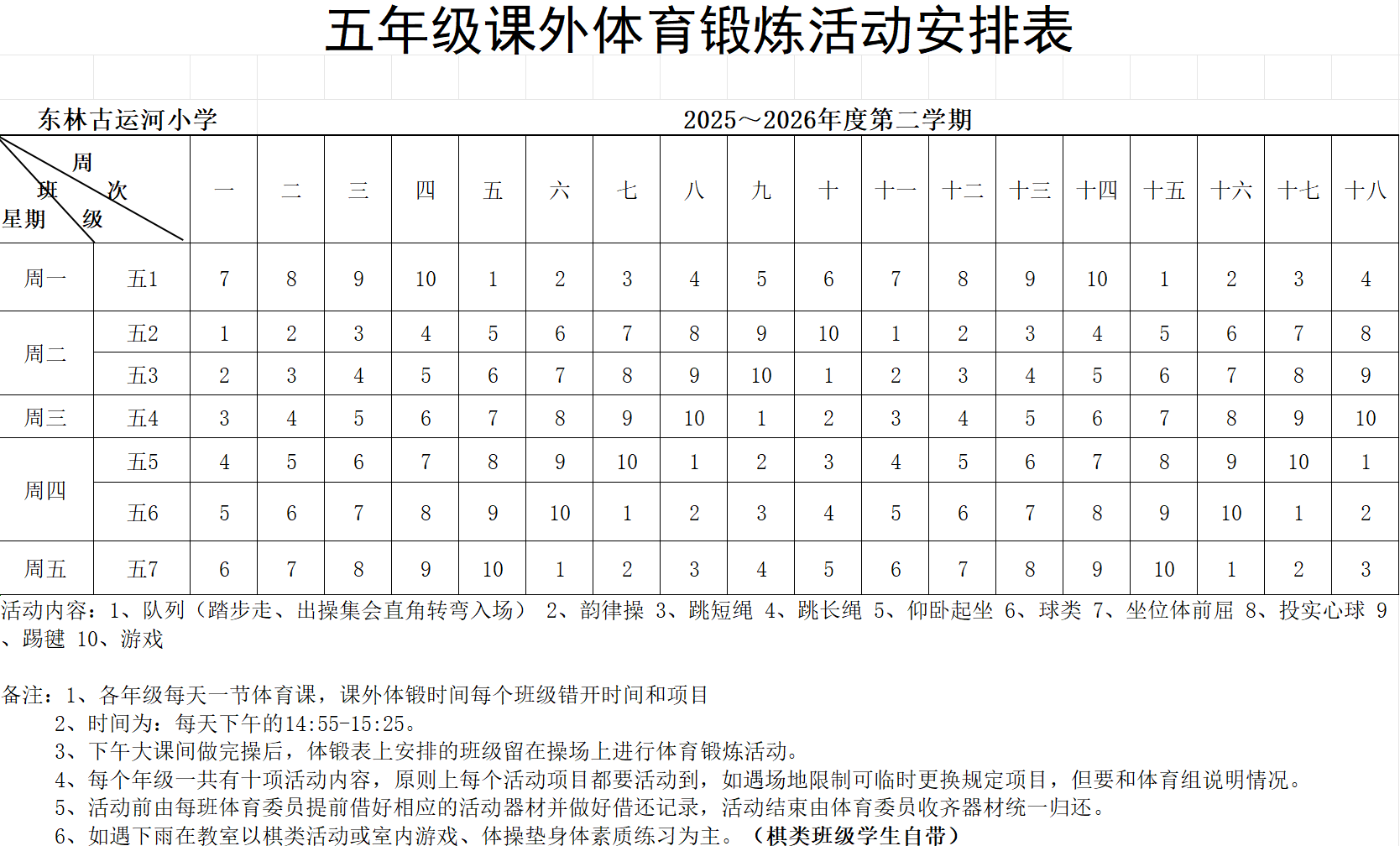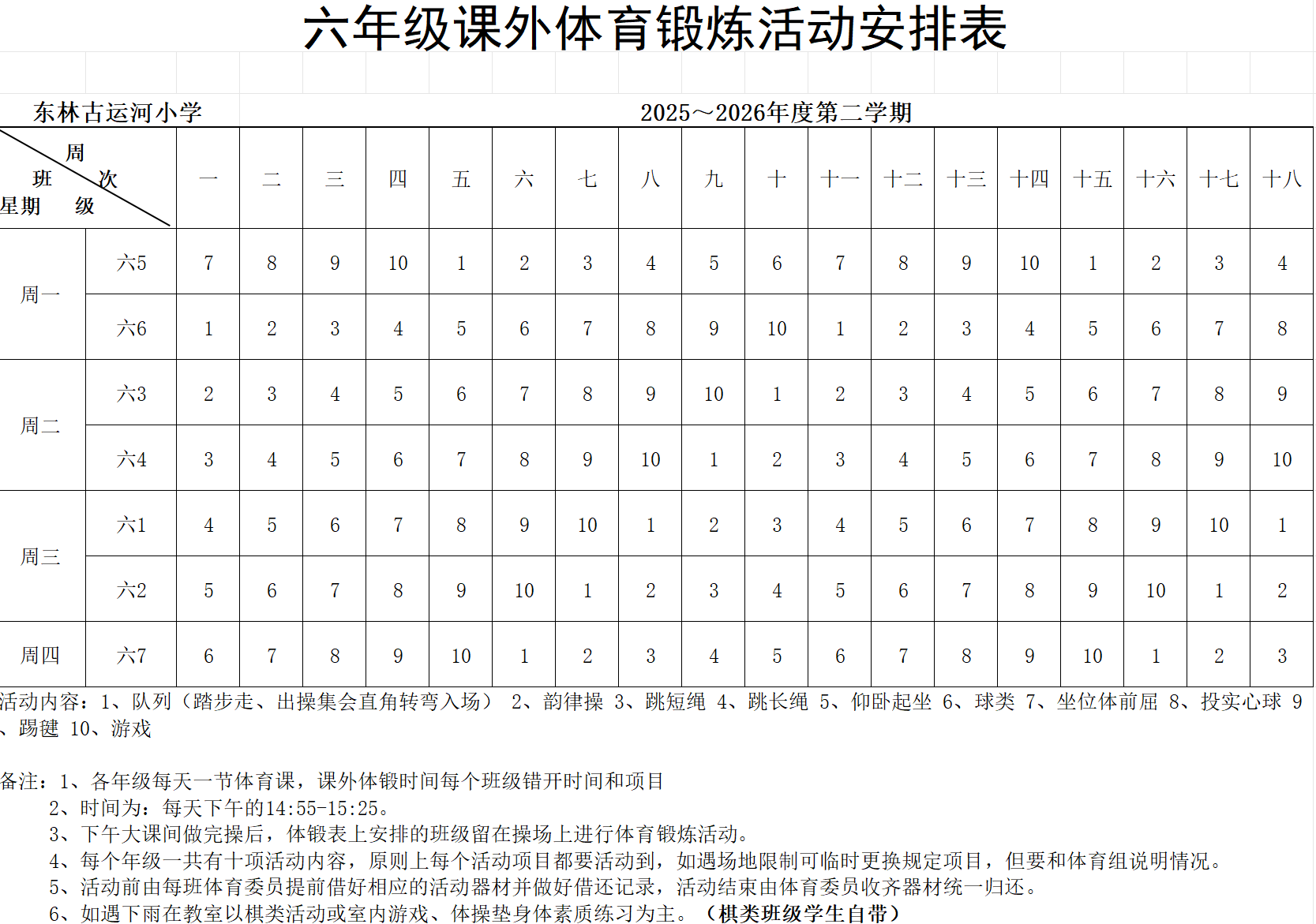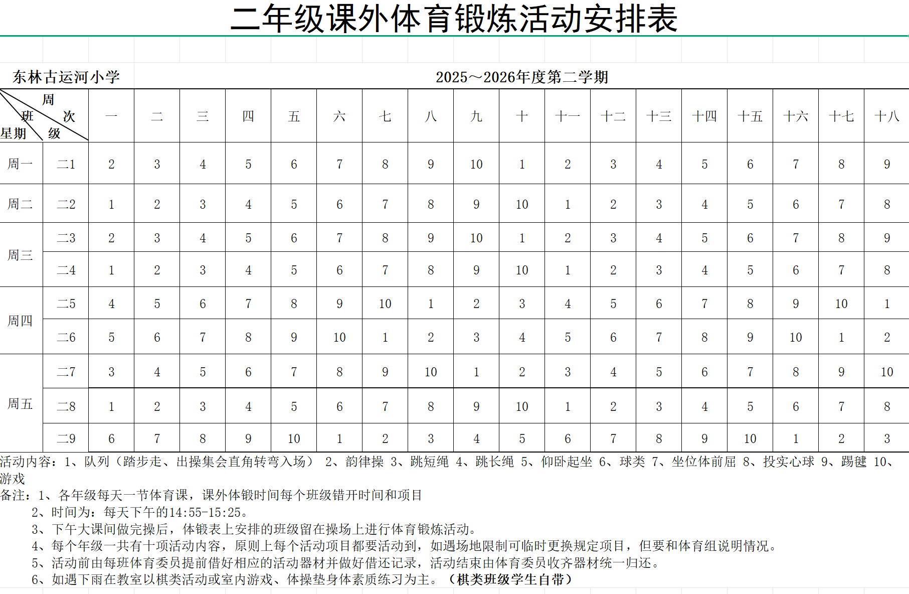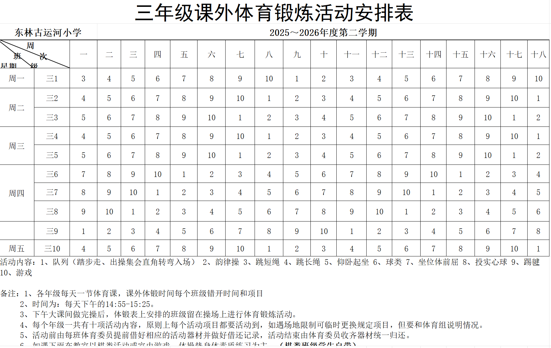 202603无锡市东林古运河小学课外体育锻炼活动安排表